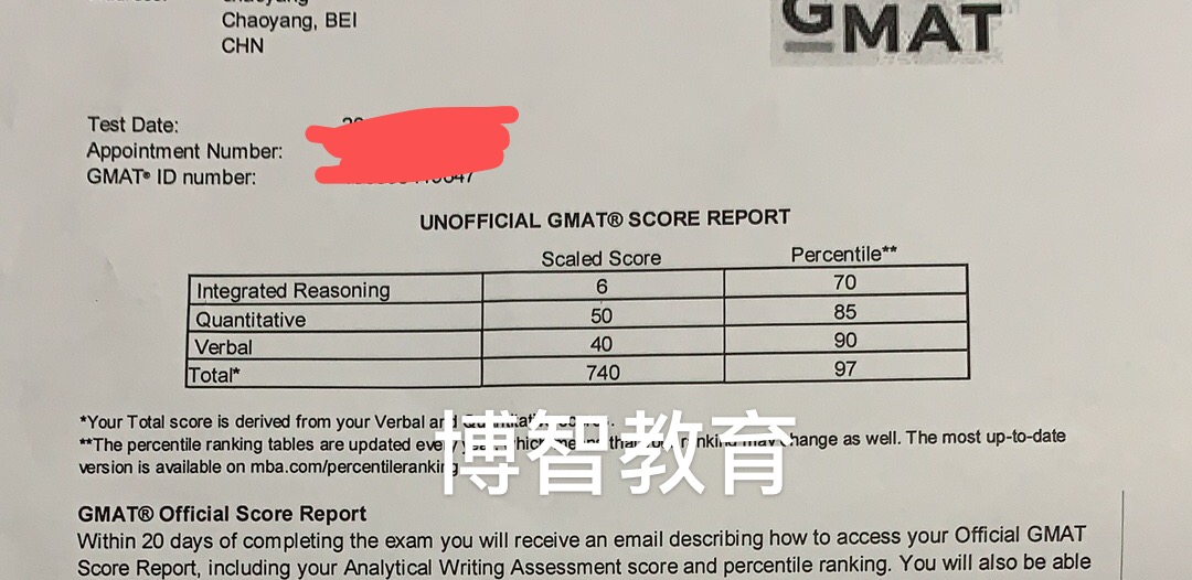 在博智的这一个多月,我体会到了gmat考试的难度但同时也感受到了它的魅力。当你捉摸不透它时觉得它题型毫无规律,很难判断,而一旦通过不断总结和思考掌握了它的出题思路,你会发现这个考试严谨到没有漏洞,我们选择的不是绝对正确答案而是五个选项中最好的那一个,考完试自己的逻辑思维确实能有很大的提升。