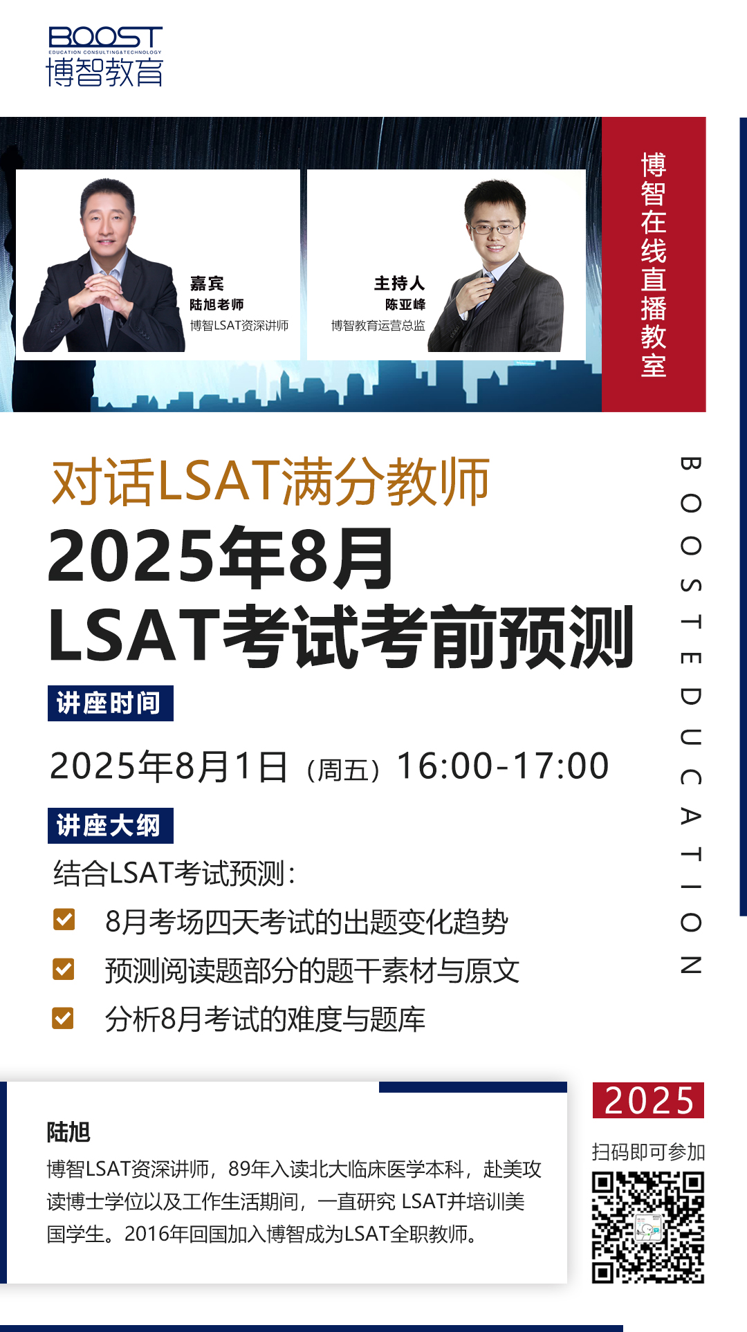 长(zhang)按识别下方海报中的二维码(ma),添加小(xiao)博(bo)微信,回复“LSAT”即可免费报名参加。